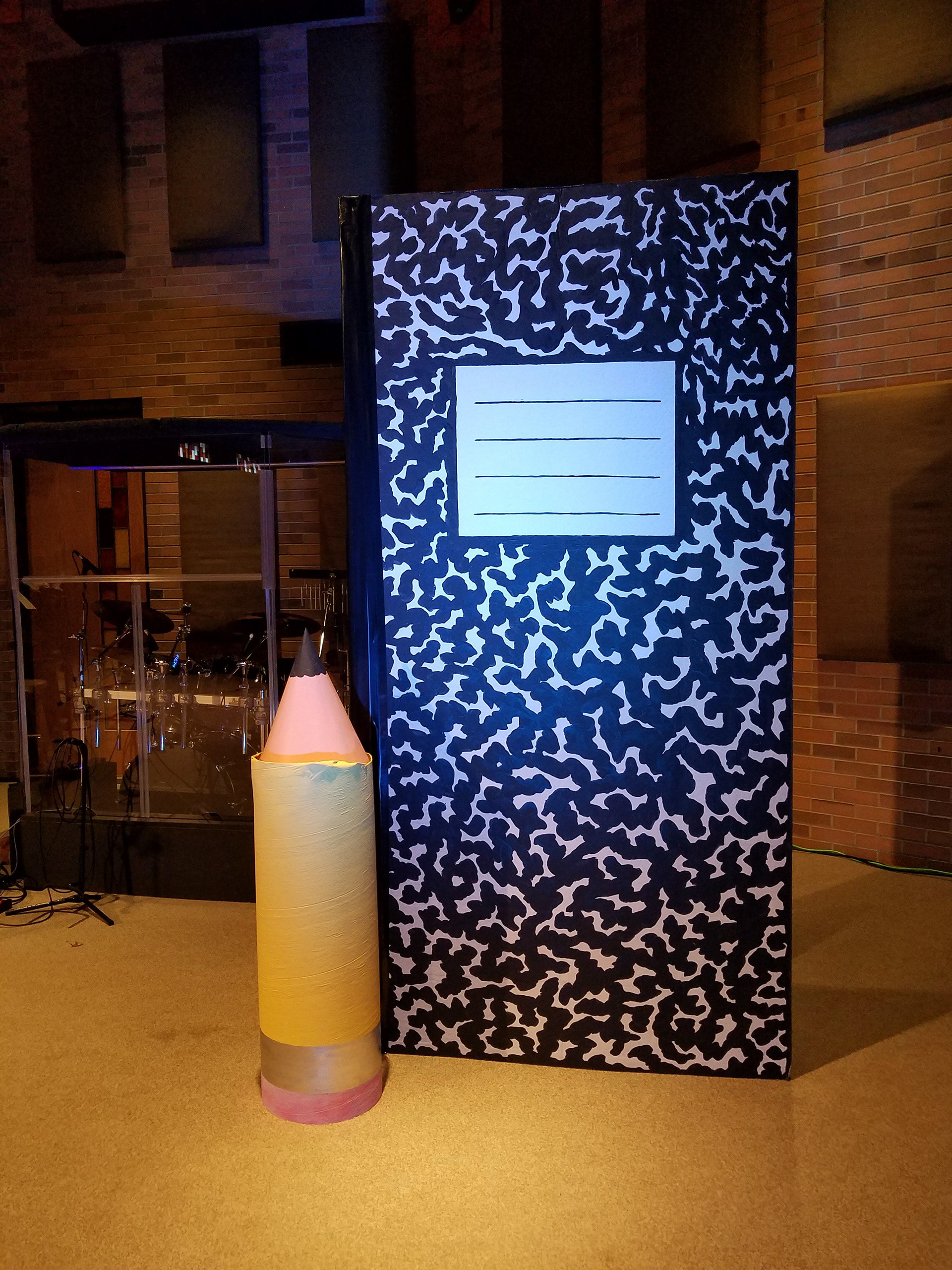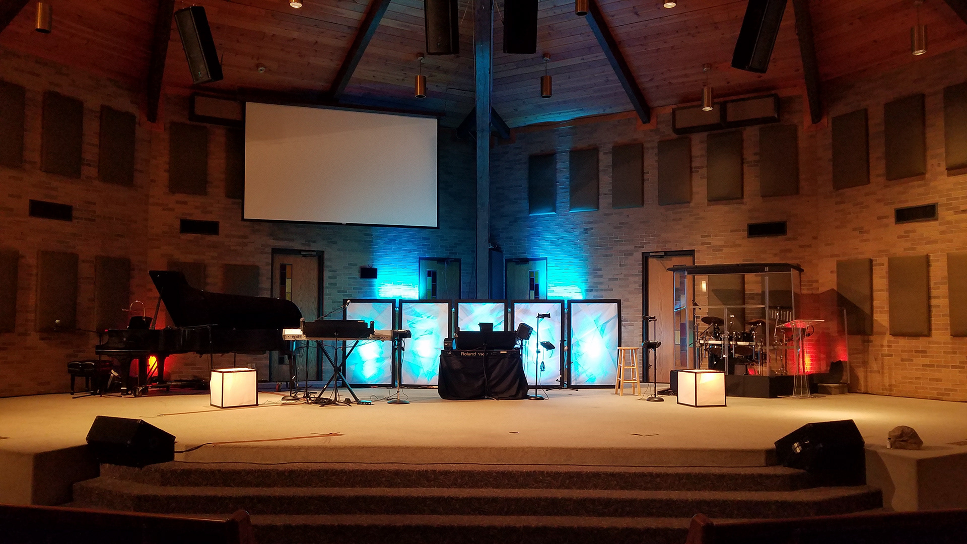 Platform design - Lighting, black 18" cubes, and black 3' x 5' frames (2019)
